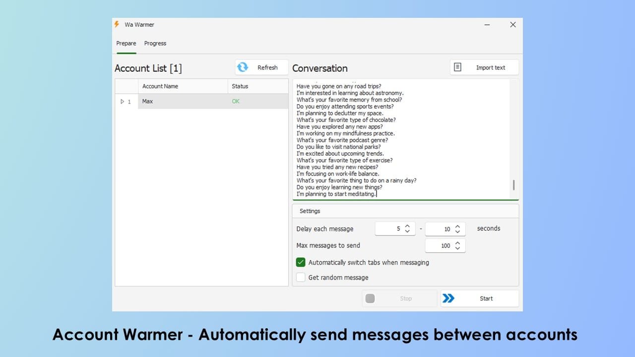 - Account WarmerIncrease account activity, by setting up accounts to automatically send messages to each other.