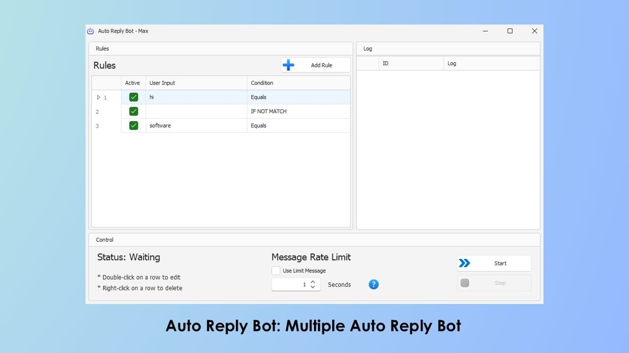 - Auto Reply BotYou can add multiple WhatsApp accounts and set up an Auto Reply Bot for each one. For example, if you have 10 WhatsApp accounts, you can add them all and configure the Auto Reply Bot for each account individually.