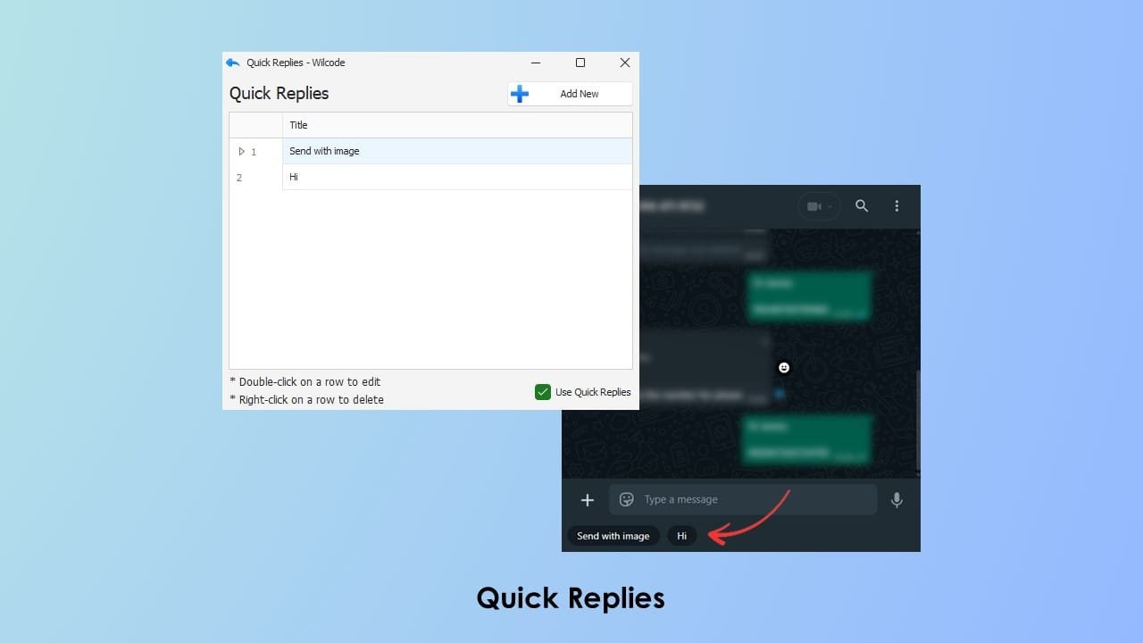 - Quick RepliesAdd ready-made message templates and send quickly on WhatsApp