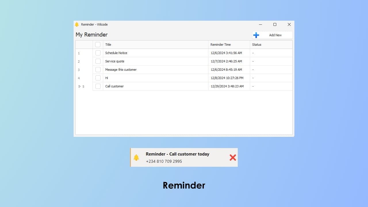 - ReminderSet up reminders, and you will receive a notification when the time arrives